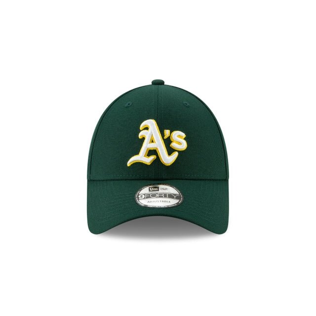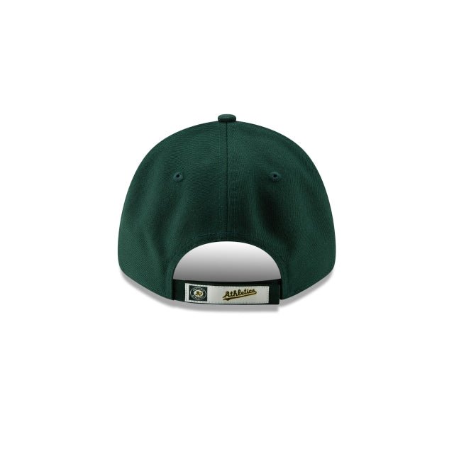 The Athletics The League 9FORTY Adjustable Cap features a team color fabrication with an embroidered Athletics logo at the front panels and a team wordmark on the adjustable strap at the rear.