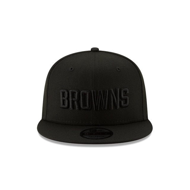 The Cleveland Browns Black on Black 9FIFTY Snapback features an allover black fabrication with an embroidered Browns logo at the front panels and an adjustable snapback closure at the rear.