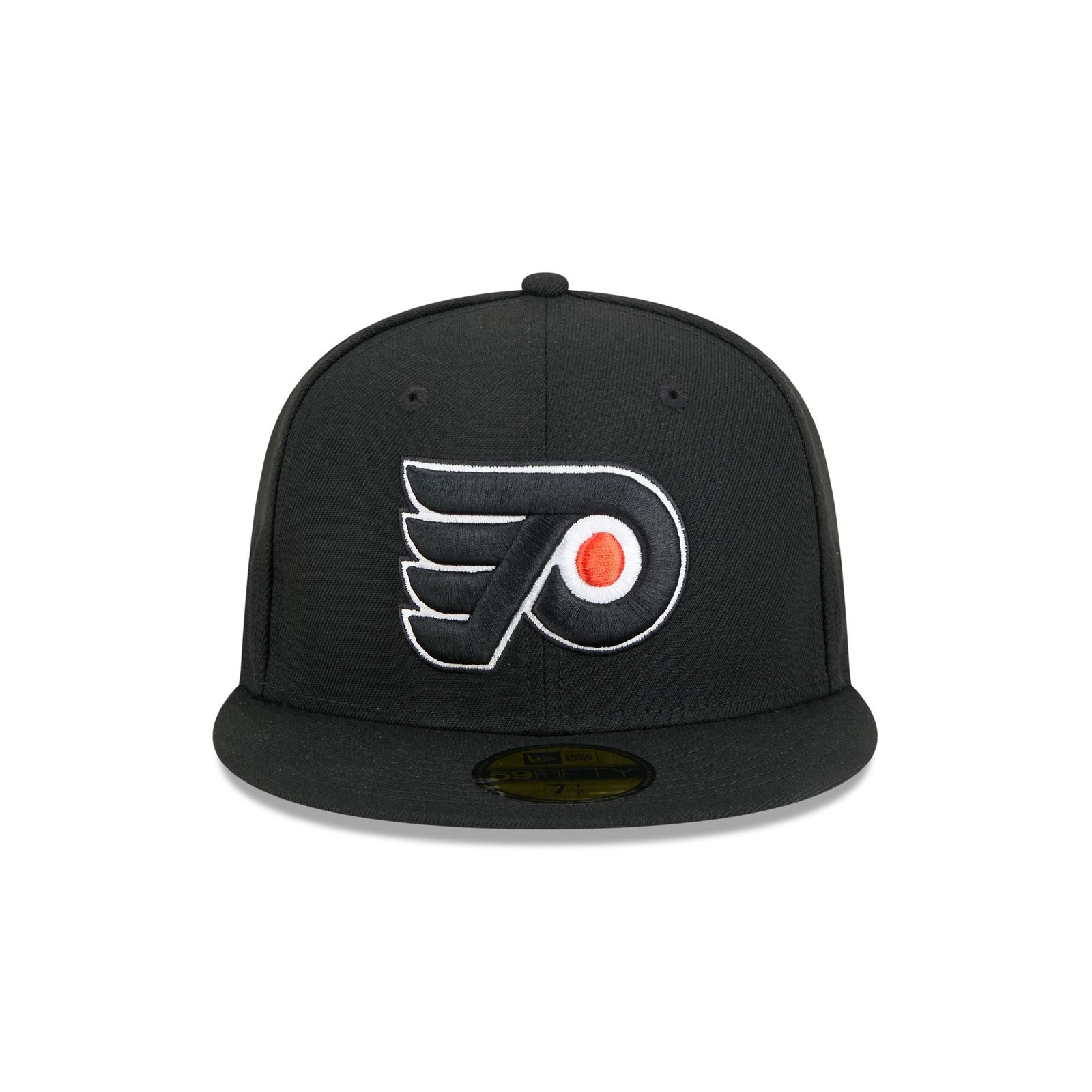 The Philadelphia Flyers Team 59FIFTY Fitted Cap features an embroidered Flyers logo at the front panels with a matching NHL Shield at the rear and a gray undervisor.