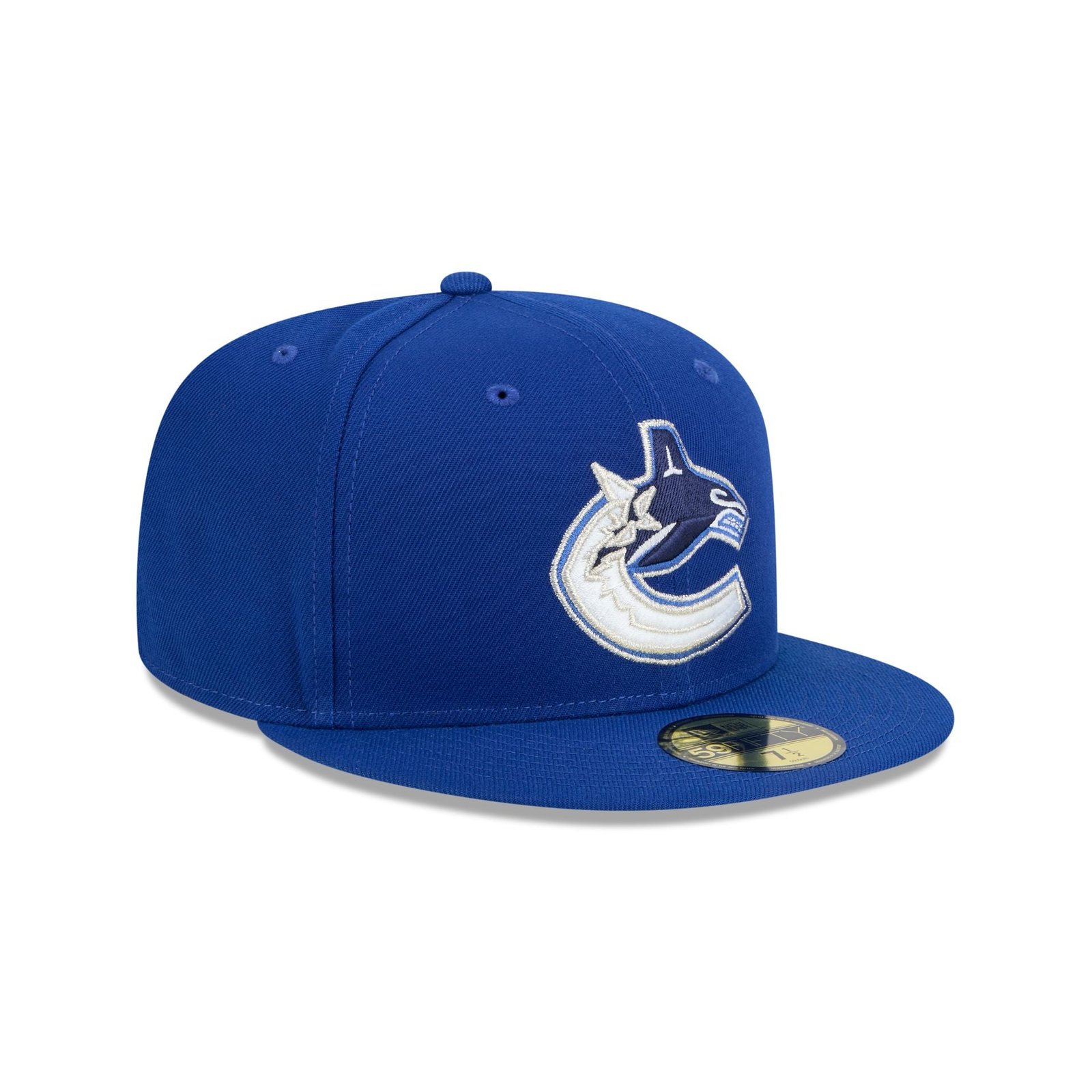 The Vancouver Canucks Team 59FIFTY Fitted Cap features an embroidered Canucks logo at the front panels with a matching NHL Shield at the rear and a gray undervisor.