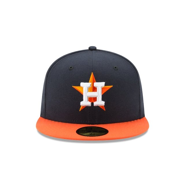 Wear what the players wear! The Houston Astros Authentic Collection Road 59FIFTY Fitted cap features a team color fabrication with an orange Astros logo at the front panels and an embroidered MLB Batterman at the rear.